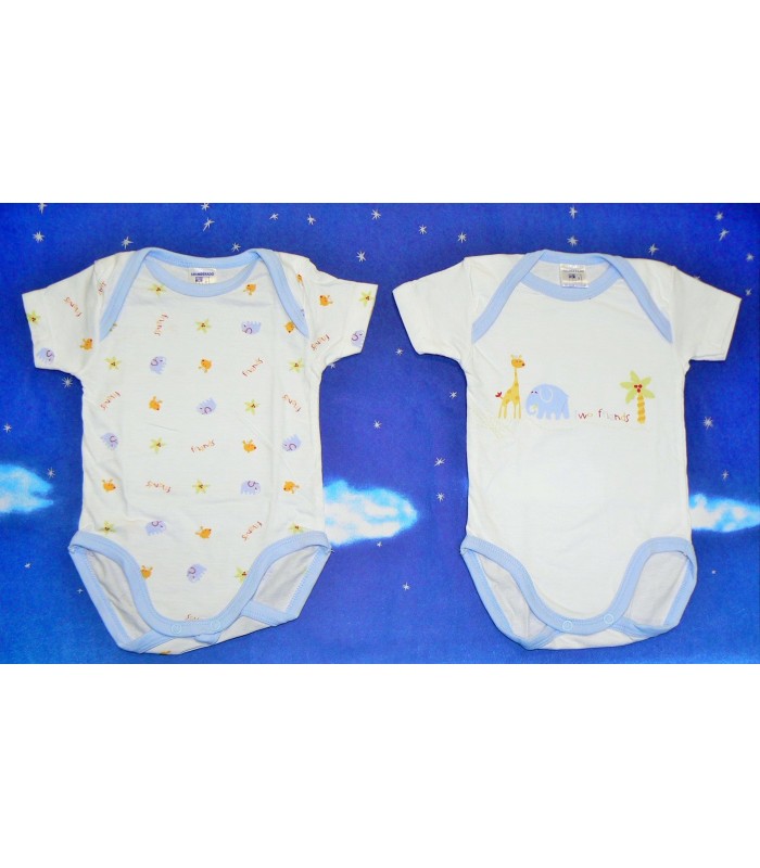 Pack de dos bodis en fantasía Two Friends de la marca Abanderado. Apertura inferior, 100% algodón y tallas: