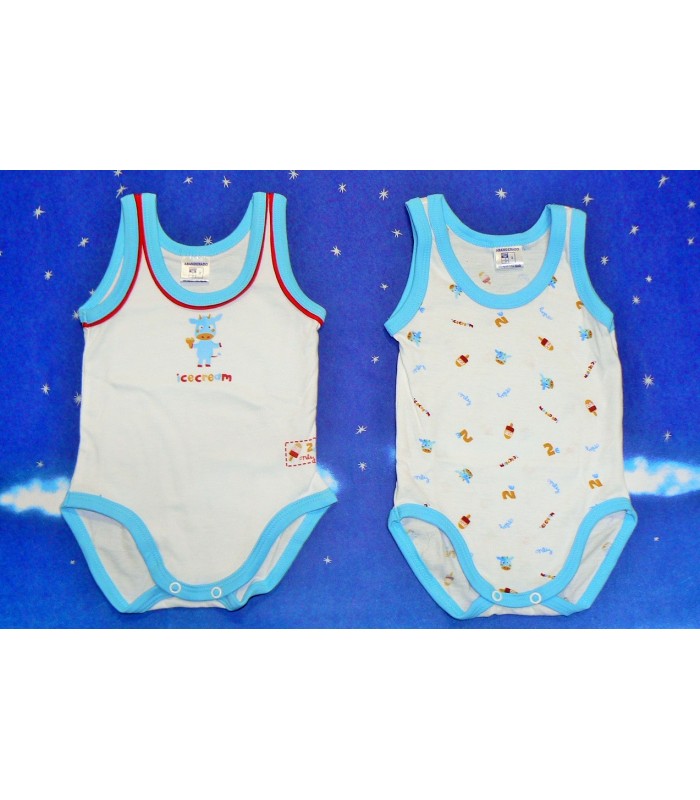 Pack de dos bodis en fantasía Ice Cream de la marca Abanderado. Apertura inferior, 100% algodón y tallas:
