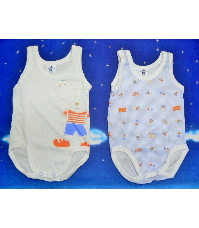 Pack de dos bodis en fantasía Happy Mouse de la marca Abanderado. Apertura inferior, 100% algodón y tallas: