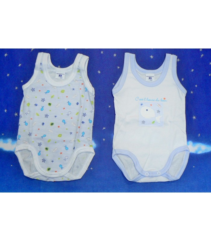 Pack de dos bodis en fantasía BéBé de la marca Abanderado. Apertura inferior, 100% algodón y tallas: