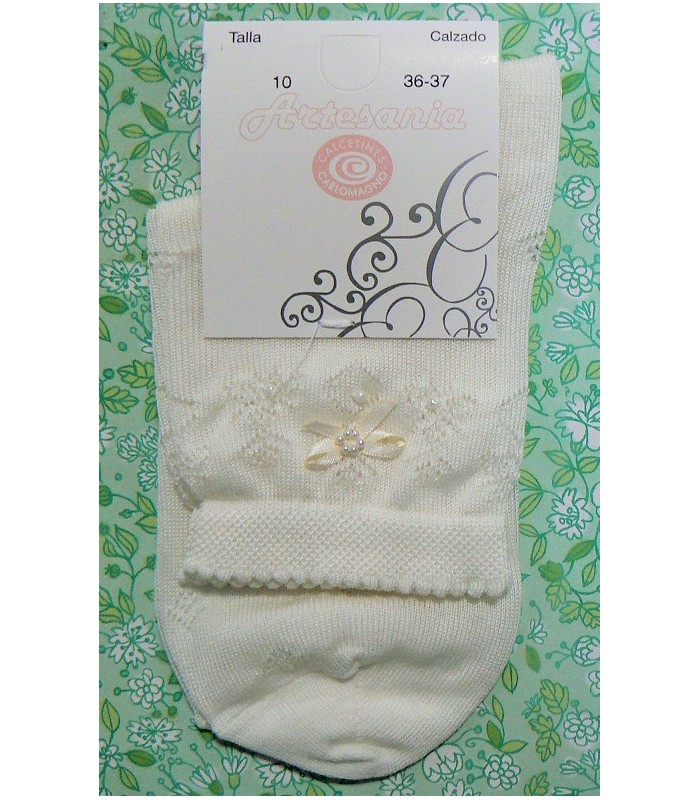 Calcetines finos, labrados y con adornos, de la marca Carlomagno. Tipo tobillero, la gama Artesanía de Carlomagno destaca por el excelente acabado y calidad, unos calcetines perfectos para comuniones y celebraciones.