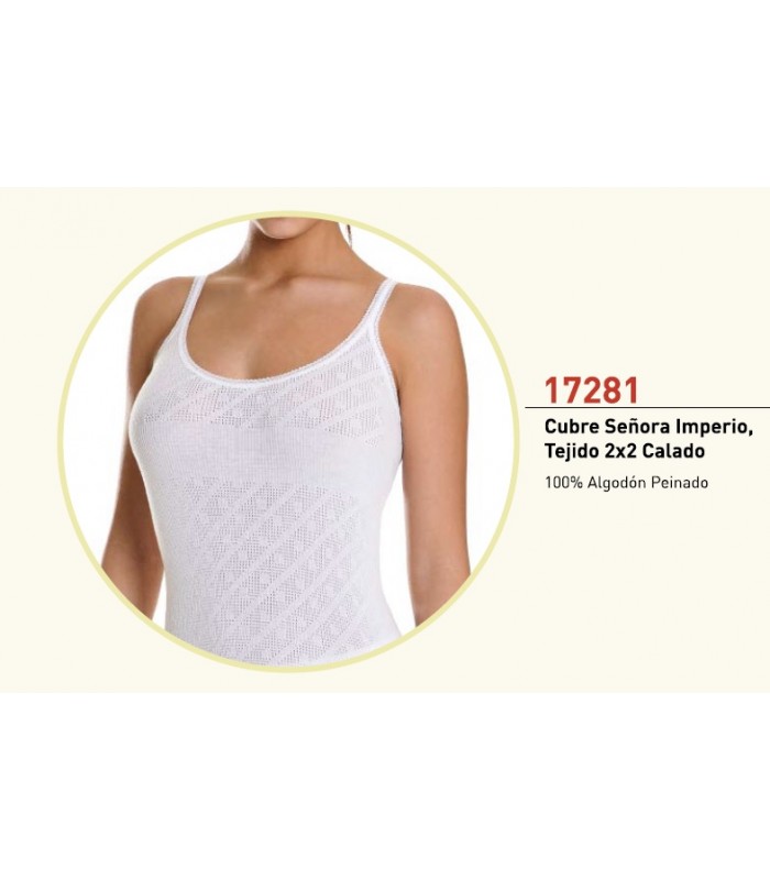 Cubre Imperio en tirantes para señora de la marca Basket. Modelo clásico de gran calidad y comodidad en algodón con tejido 2x2 calado.