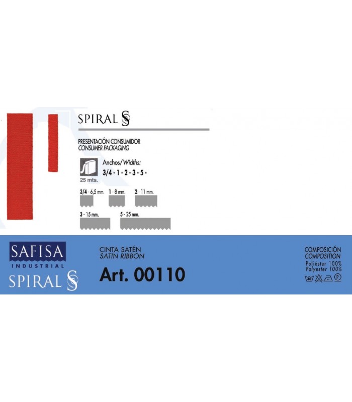 Rollo de cinta en raso o satén de 25 metros de la marca Safisa.