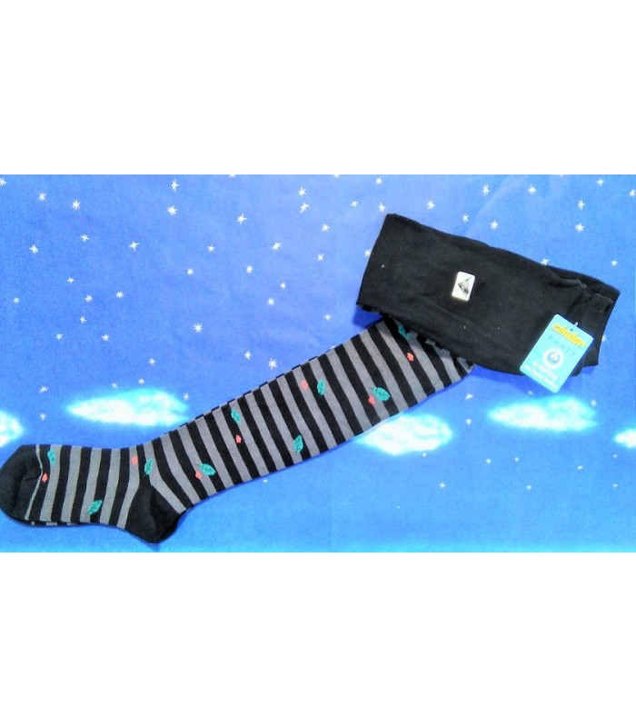 Leotardos Cóndor infantil a rayas negras y grises con dibujo de hojas. Los leotardos vienen en su respectiva caja, disponible en color único y talla 12 (146 a 152 cm. de altura)