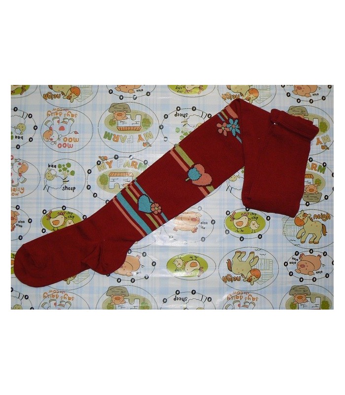 Leotardos infantiles de la marca Punto Blanco i Marun en fantasía con dibujos de corazones y rayas. Disponible en color teja y verde kaki, tallas 2, 6 y 10 años.