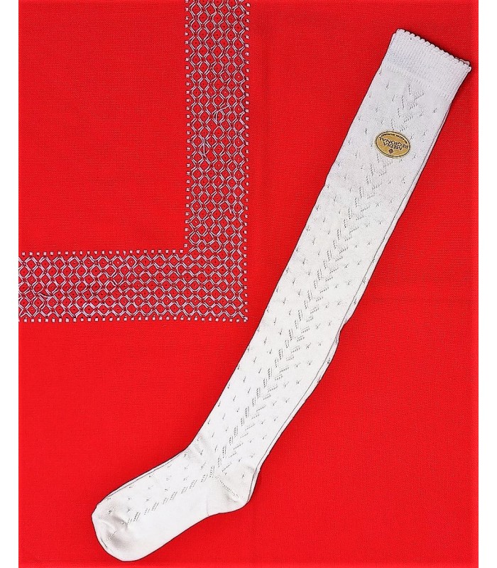 Medias regionales para señora de la marca Pocholo. Disponible en tallas Pequeña y Mediana y color único crudo.